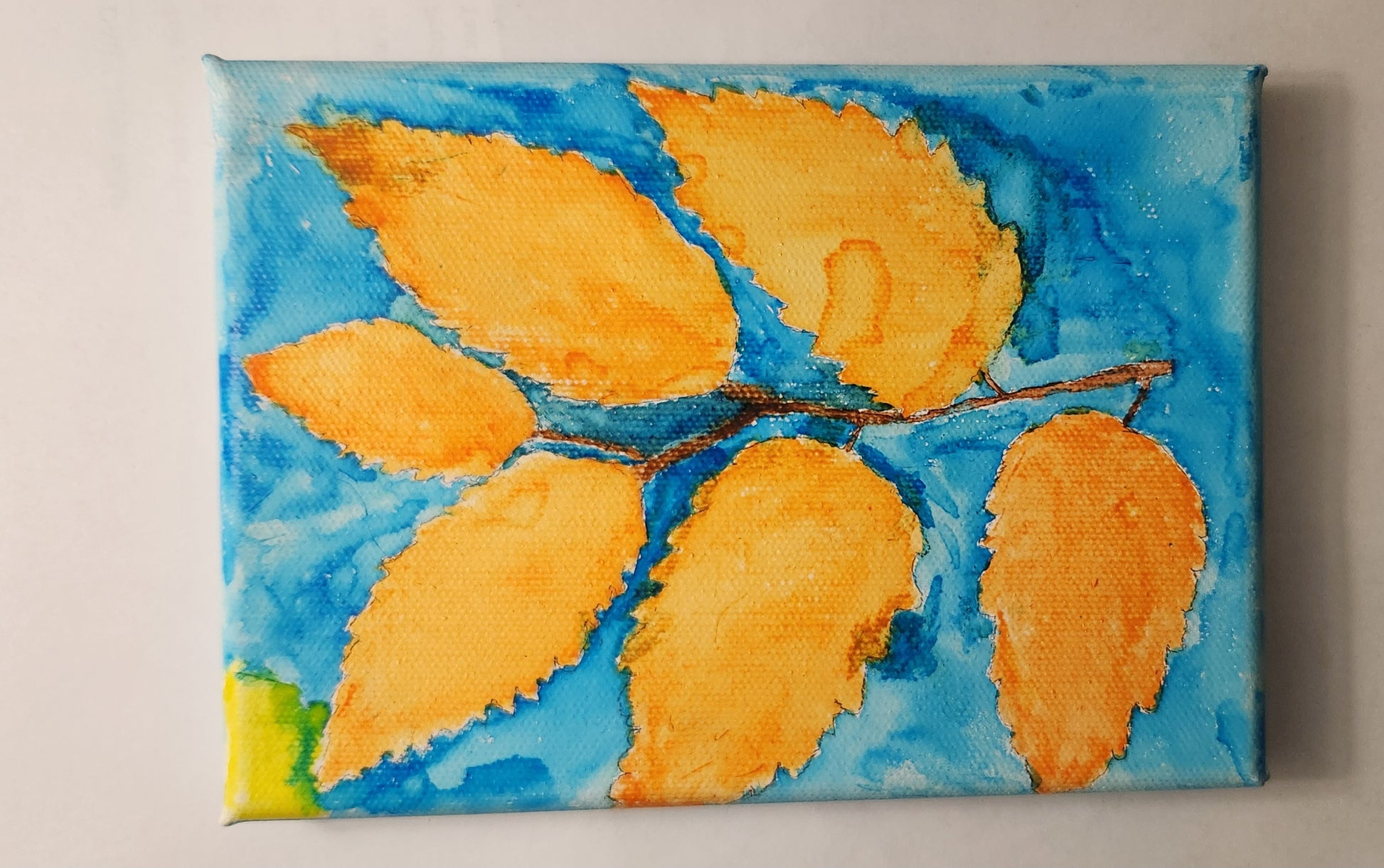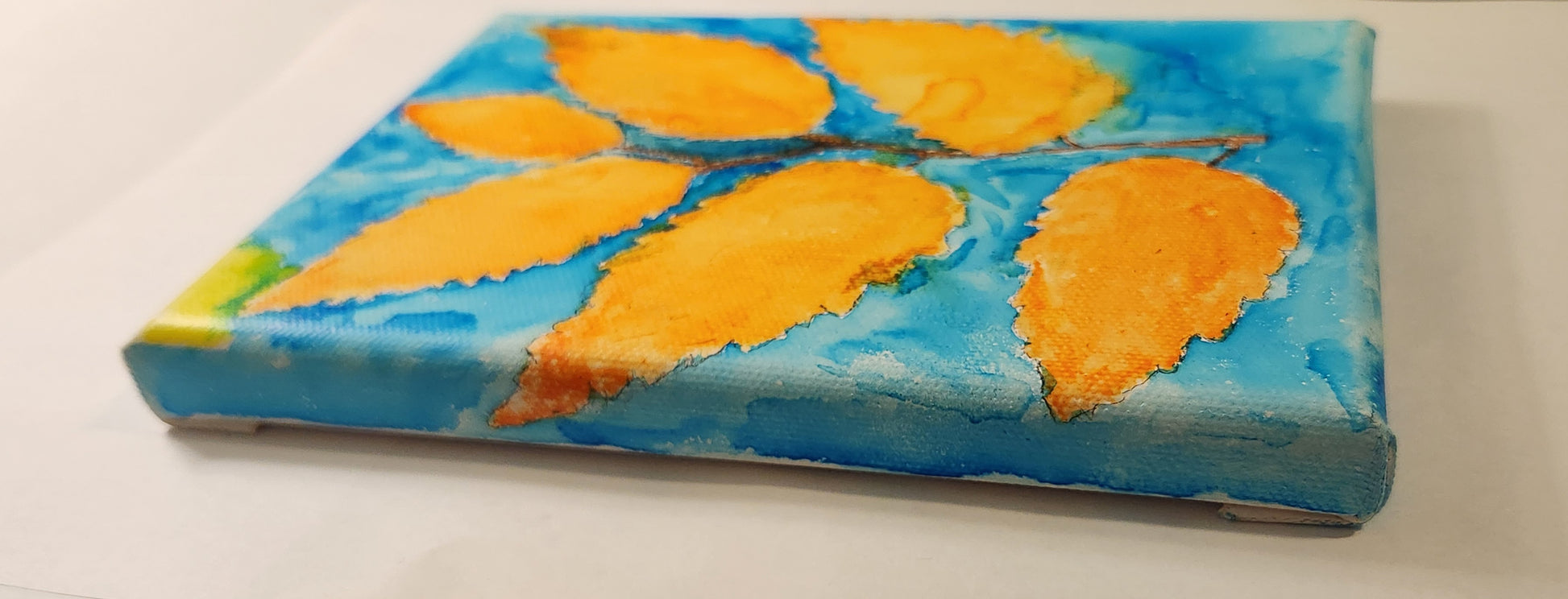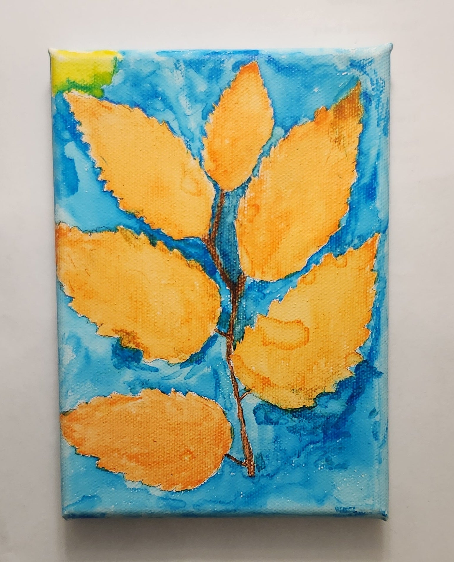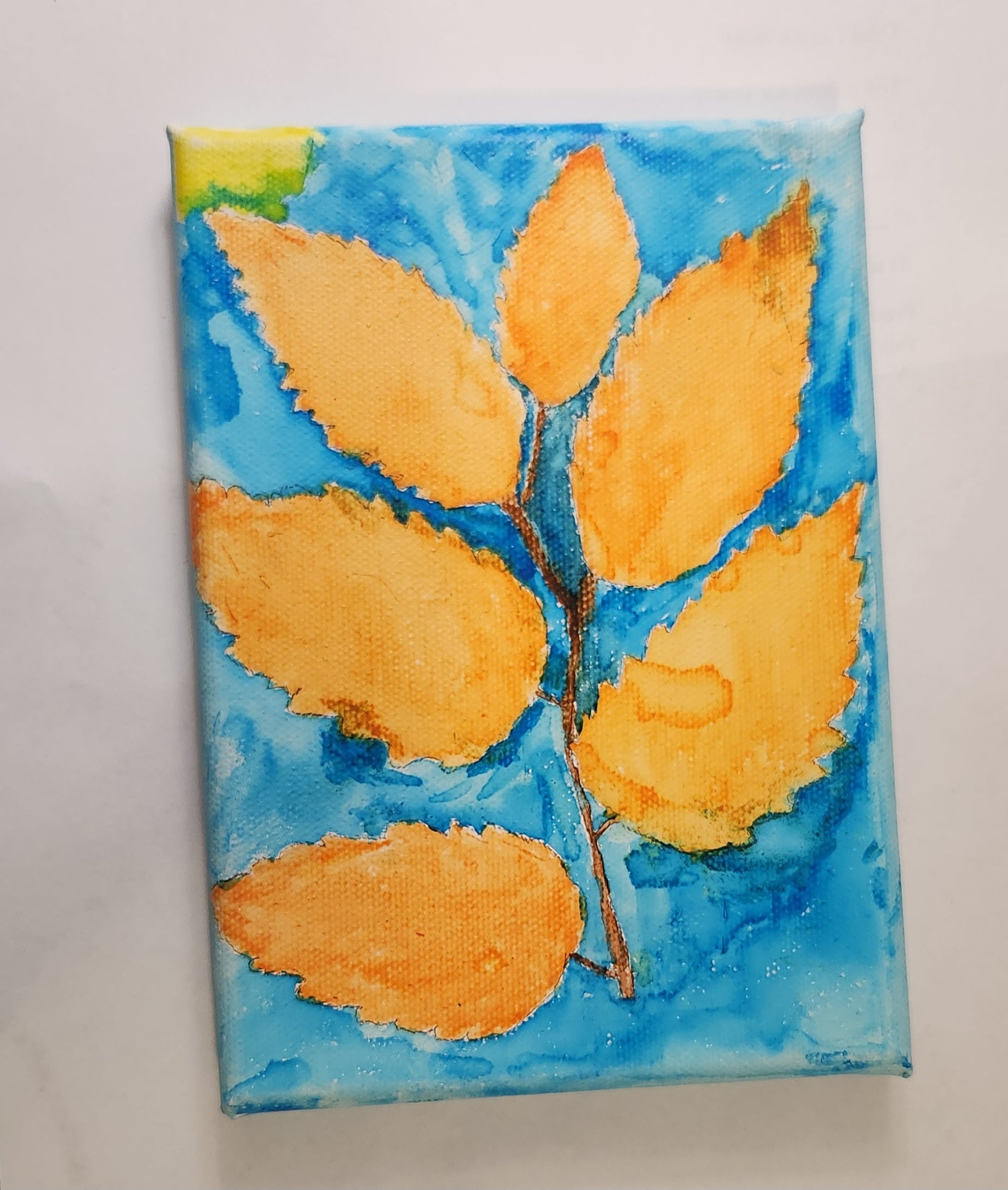 Imperfect” is a simple, nature-inspired piece that captures the calm beauty of leaves against a soft blue sky. Each leaf was hand-drawn and painted with watercolor, giving it a gentle, organic feel and natural flow.